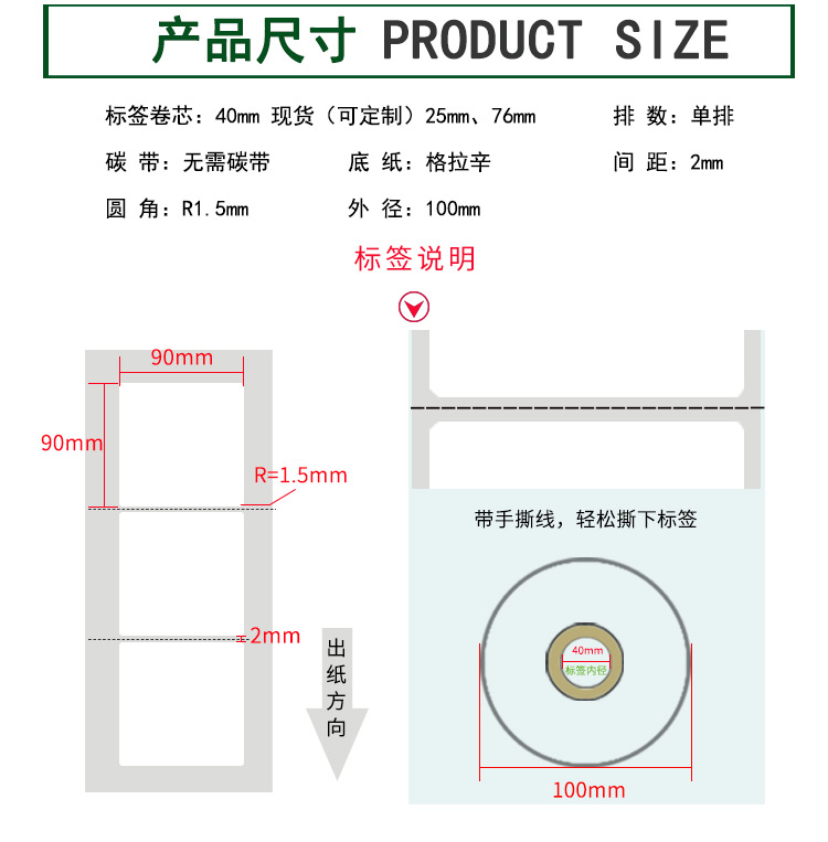 【標(biāo)簽間距】2mm、圓角R=1MM、卷芯寬度:40mm