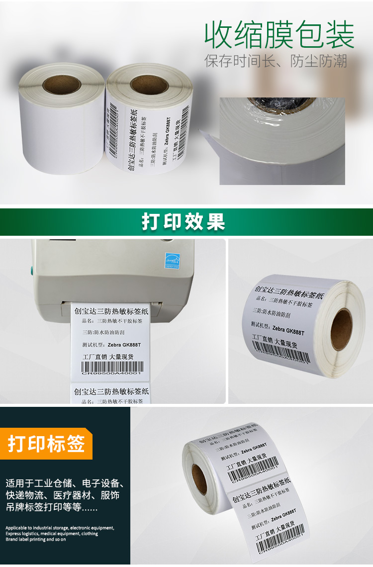 適合不同氣候地區(qū)使用,適用于亞馬遜FBA、郵政國(guó)際物流標(biāo)簽、郵政包裹、EBAY、速賣(mài)通、遞四方、EUB標(biāo)簽紙、電商標(biāo)簽,五金塑膠等