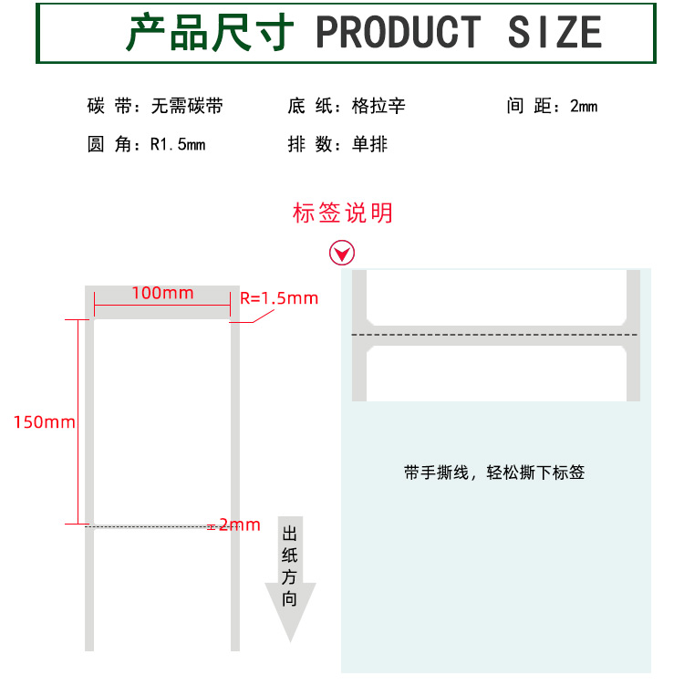 【標簽間距】2mm、圓角R=1MM、卷芯寬度:40mm