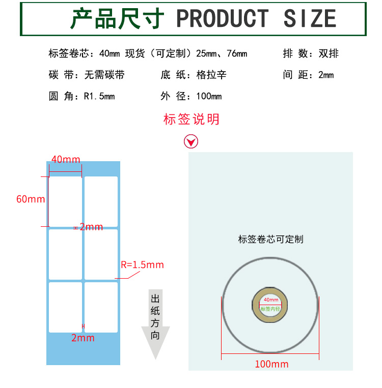 【標(biāo)簽間距】2mm、圓角R=1MM、卷芯寬度:40mm