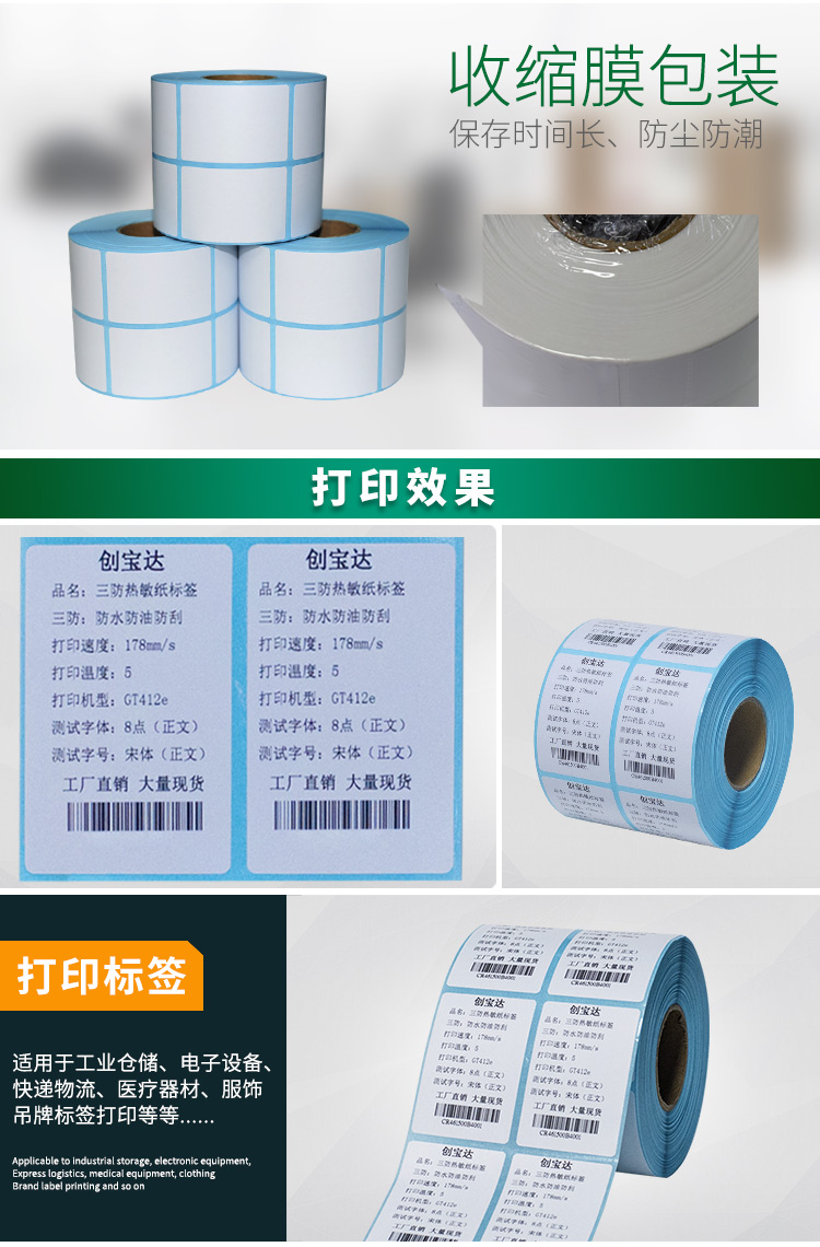 適合不同氣候地區(qū)使用,適用于亞馬遜FBA、郵政國際物流標(biāo)簽、郵政包裹、EBAY、速賣通、遞四方、EUB標(biāo)簽紙、電商標(biāo)簽,五金塑膠等
