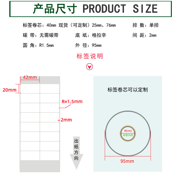 【標(biāo)簽間距】2mm、圓角R=1MM、卷芯寬度:40mm