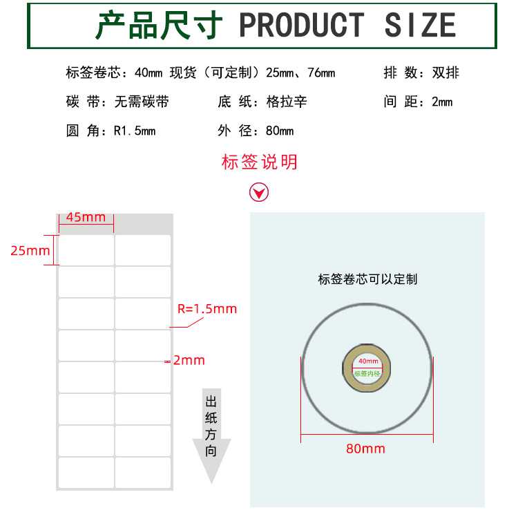 【標簽間距】2mm、圓角R=1MM、卷芯寬度:40mm