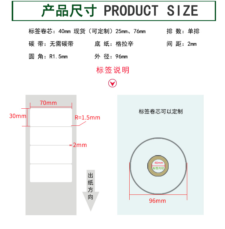【標(biāo)簽間距】2mm、圓角R=1MM、卷芯寬度:40mm