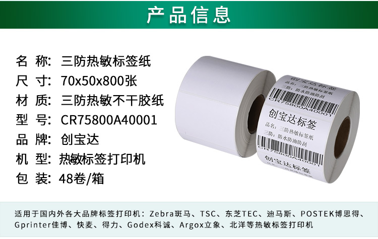【規(guī)格】卷裝70mm*50mm*800張 帶手撕線(xiàn)(足數(shù):800張)一箱裝48卷