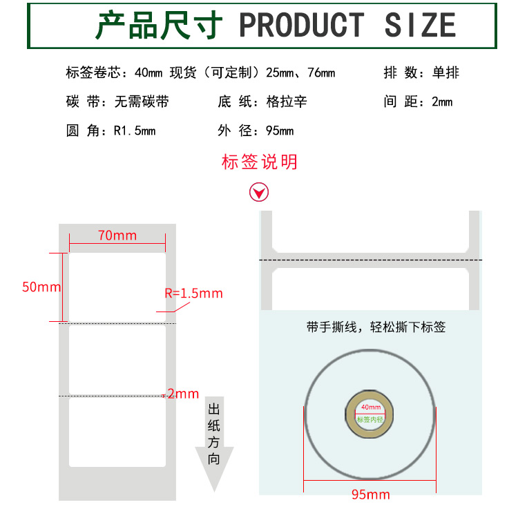 【標(biāo)簽間距】2mm、圓角R=1MM、卷芯寬度:40mm