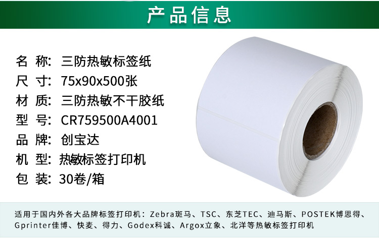 【規(guī)格】卷裝75mm*90mm*500張單排(足數(shù):500張)一箱裝30卷