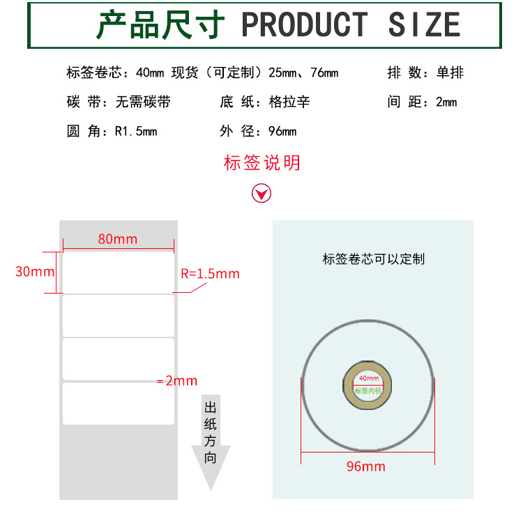 【標簽間距】2mm、圓角R=1MM、卷芯寬度:40mm