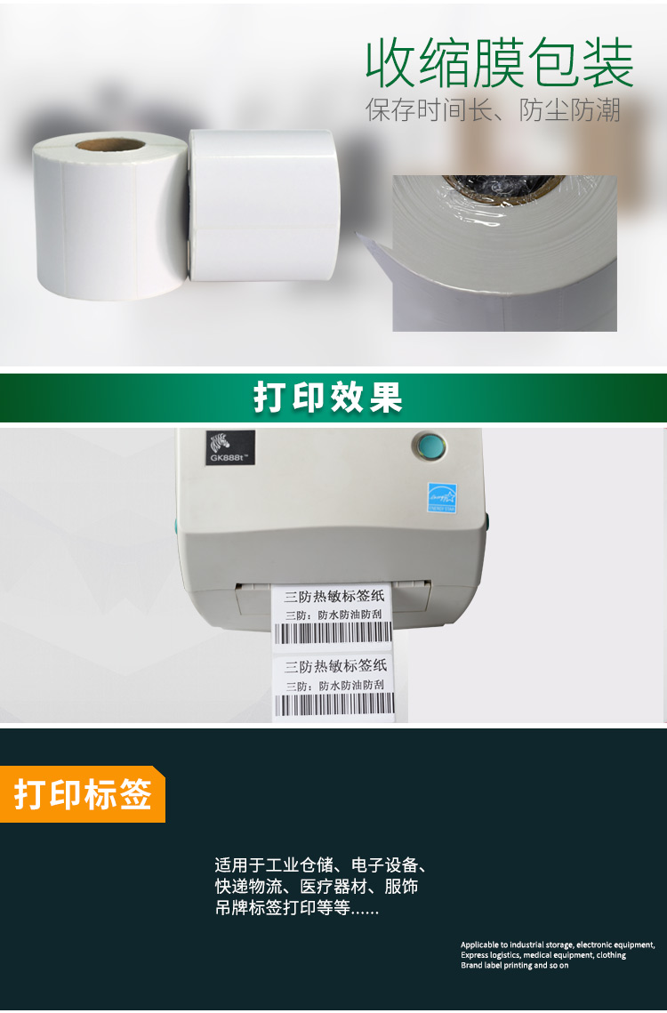 適合不同氣候地區(qū)使用,適用于亞馬遜FBA、郵政國際物流標(biāo)簽、郵政包裹、EBAY、速賣通、遞四方、EUB標(biāo)簽紙、電商標(biāo)簽,五金塑膠等
