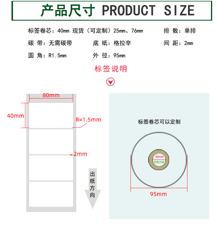 【標(biāo)簽間距】2mm、圓角R=1MM、卷芯寬度:40mm