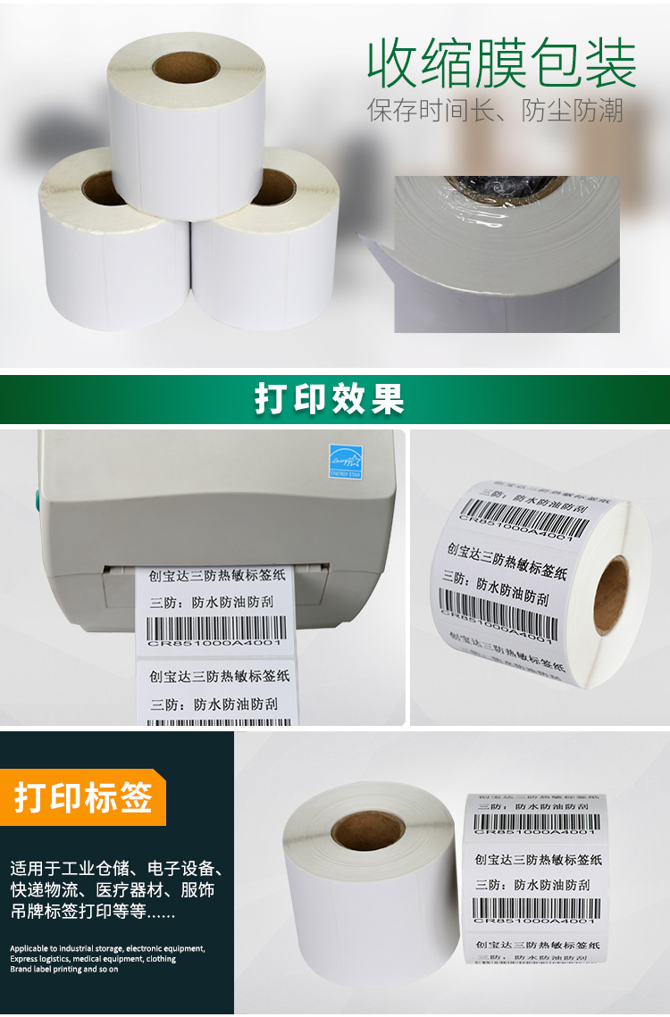 適合不同氣候地區(qū)使用,適用于亞馬遜FBA、郵政國際物流標(biāo)簽、郵政包裹、EBAY、速賣通、遞四方、EUB標(biāo)簽紙、電商標(biāo)簽,五金塑膠等