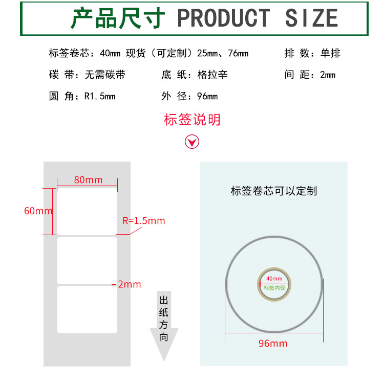 【標(biāo)簽間距】2mm、圓角R=1MM、卷芯寬度:40mm