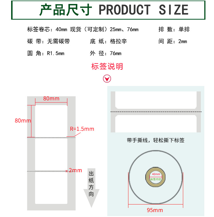 【標(biāo)簽間距】2mm、圓角R=1MM、卷芯寬度:40mm