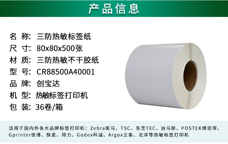 【規(guī)格】卷裝80mm*80mm*500張單排(足數(shù):500張)一箱裝36卷