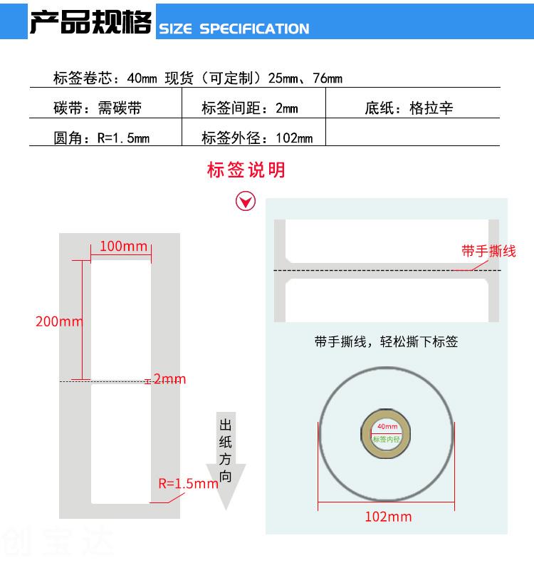 【規(guī)格】100mm*200mm*250張/卷(足數(shù)),單排,一箱裝30卷