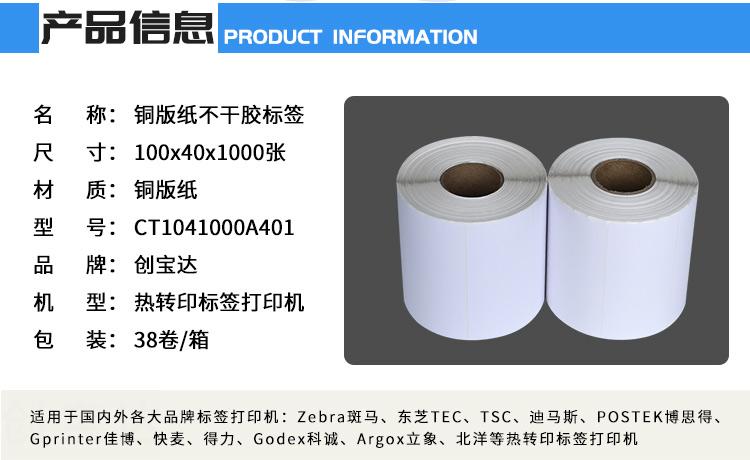 適合不同氣候地區(qū)使用,適用電子電器、五金塑膠、服裝、醫(yī)藥、日化、食品、商超、倉儲物流、資產(chǎn)管理、條碼標識、外箱貼紙等長期保存的產(chǎn)品標簽及外箱標簽同時也可以用于長時間保存(配合碳帶)的亞馬遜、郵政國際、物流標簽、郵政包裹、EBAY、速賣通、遞四方、出口EUB標簽、出口電商等標簽