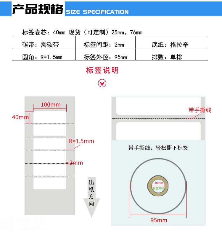 【規(guī)格】100mmx40mmx1000張/卷(足數(shù)),雙排,一箱裝36卷
