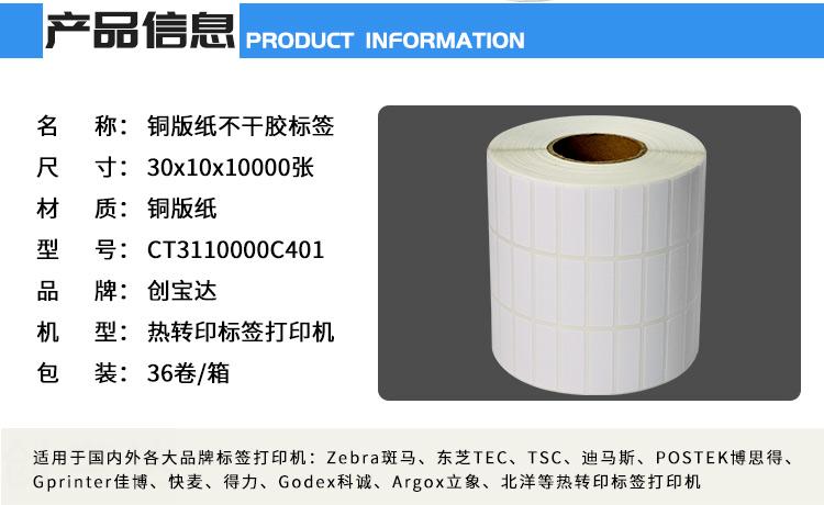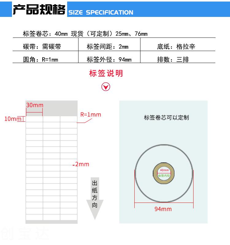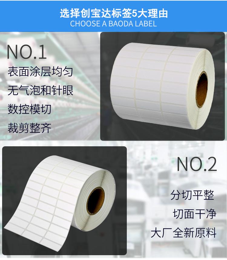 適合不同氣候地區(qū)使用,適用電子電器、五金塑膠、服裝、醫(yī)藥、日化、食品、商超、倉儲物流、資產(chǎn)管理、條碼標(biāo)識、外箱貼紙等長期保存的產(chǎn)品標(biāo)簽及外箱標(biāo)簽同時也可以用于長時間保存(配合碳帶)的亞馬遜、郵政國際、物流標(biāo)簽、郵政包裹、EBAY、速賣通、遞四方、出口EUB標(biāo)簽、出口電商等標(biāo)簽