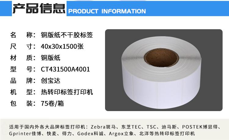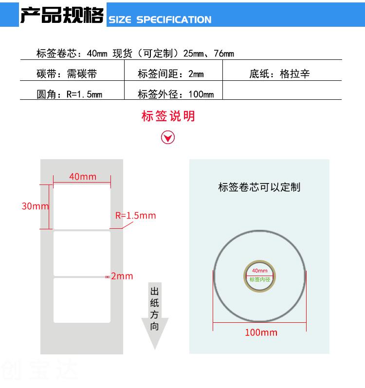 【規(guī)格】40mm*30mm*1500張/卷(足數(shù)),單排,一箱裝75卷