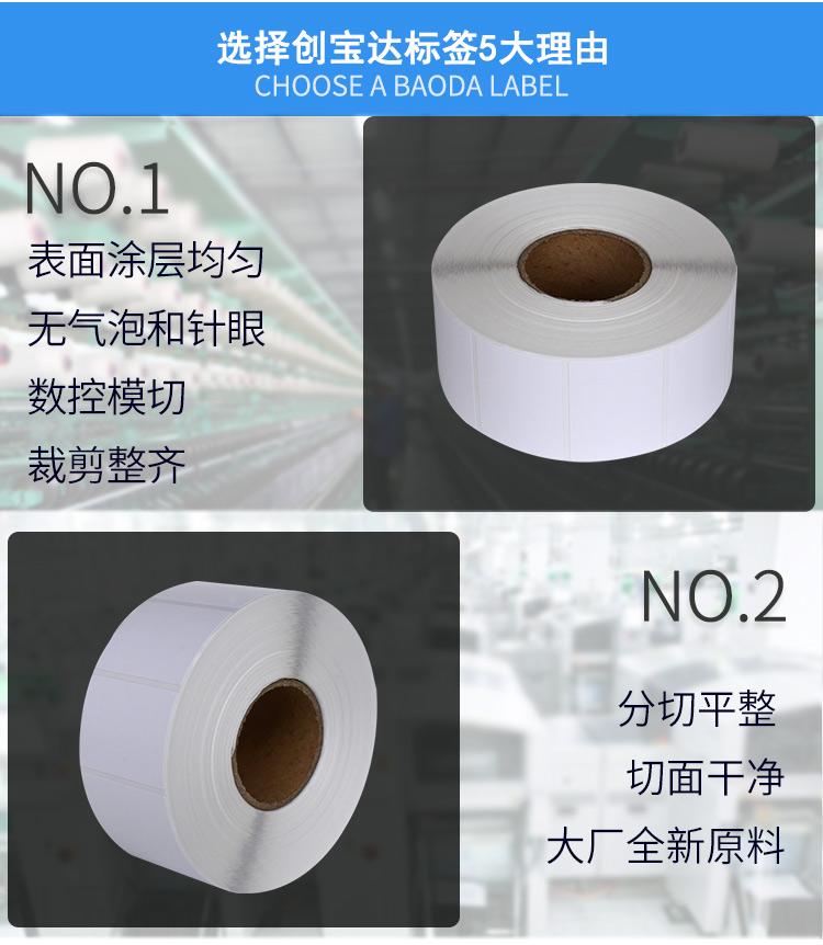 適合不同氣候地區(qū)使用,適用電子電器、五金塑膠、服裝、醫(yī)藥、日化、食品、商超、倉儲物流、資產(chǎn)管理、條碼標識、外箱貼紙等長期保存的產(chǎn)品標簽及外箱標簽同時也可以用于長時間保存(配合碳帶)的亞馬遜、郵政國際、物流標簽、郵政包裹、EBAY、速賣通、遞四方、出口EUB標簽、出口電商等標簽