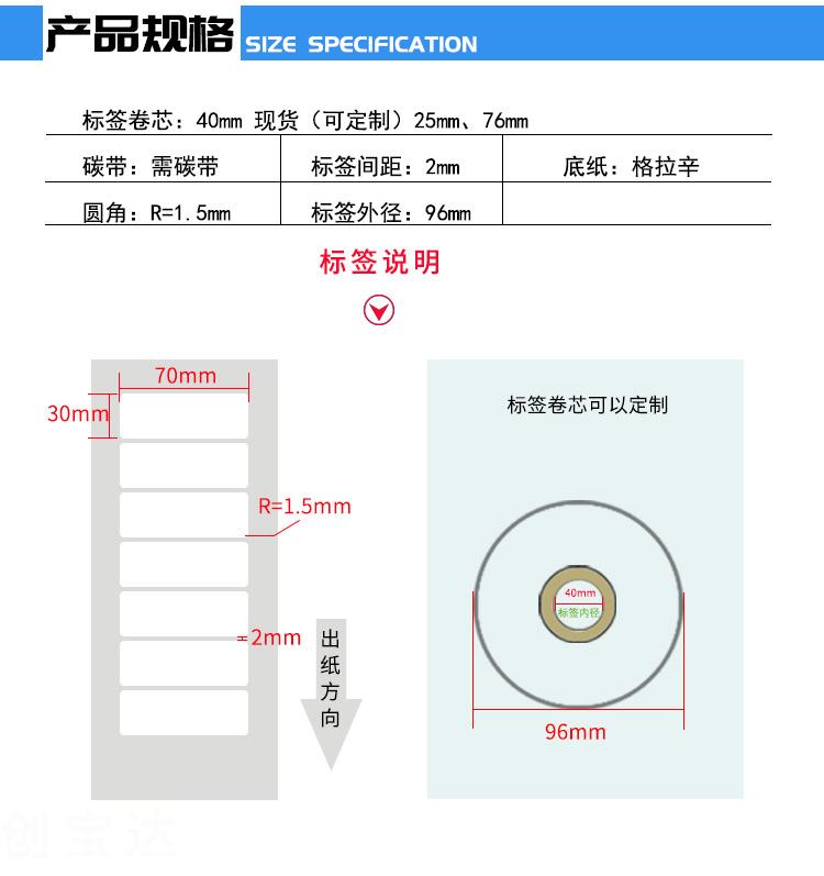 【規(guī)格】70mm*30mm*1500張/卷(足數(shù)),單排,一箱裝30卷