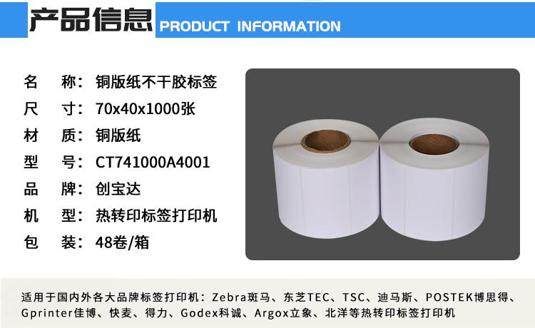 【規(guī)格】70mm*40mm*1000張/卷(足數(shù)),單排,一箱裝48卷