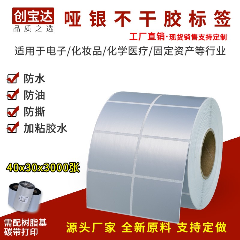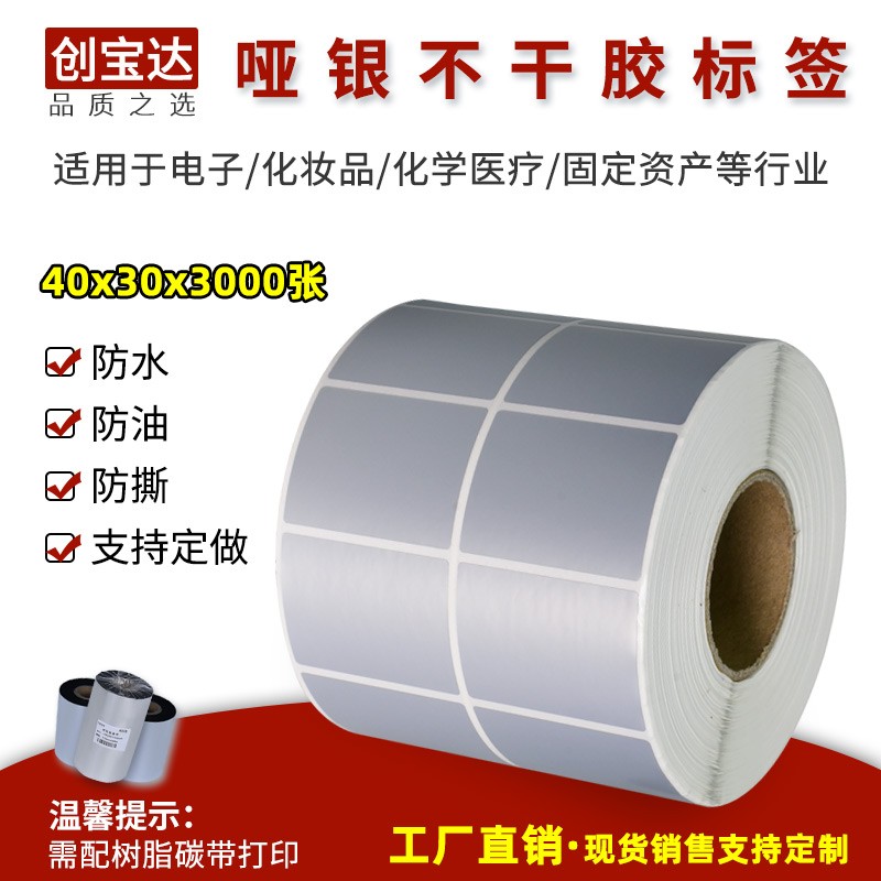 啞銀不干膠標簽,具有很好的耐侯性,效果十分清晰,抗刮能力強,撕不爛。防水防腐蝕,PET材質(zhì),穩(wěn)定性高